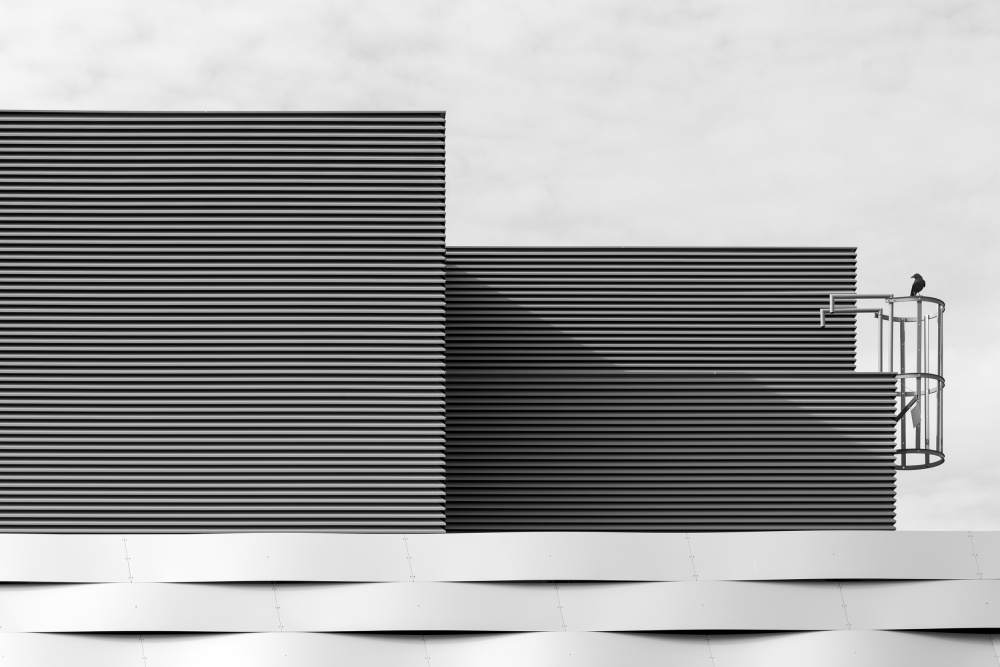 Yes, aesthetics plays a large role in my architectural images. I think “aesthetics” is for me just another expression of "life and soul". My main goal regarding aesthetics of architecture is to show it’s beautiful and interesting sides – if possible in conjunction with things that do not directly belong to shooting architecture. For example, the man in the picture "Busy boss" or "UFO landing", an animal as in "Bird inspection", an airplane in "Escape"  or the sky "CLOUDS".