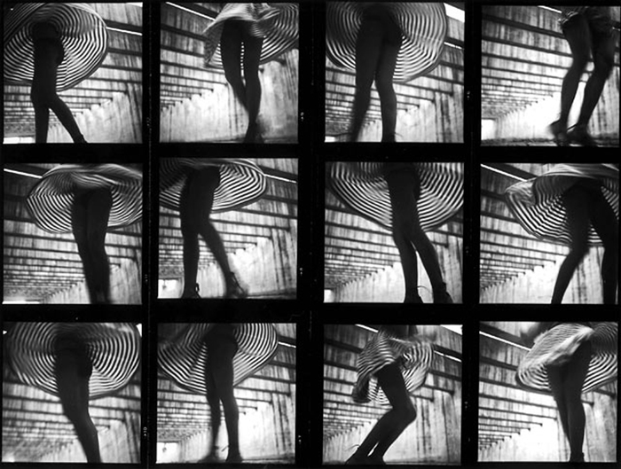 I can probably say that my first sets of contact sheets, made over a very long period in the ’80s, with my favourite model Pha-lê, are great memories for me. Memories of the pleasure that I had, rightly, at discovering the laboratory and then at constructing the sequences of Movements de Jupes (Movements of Skirts) that we were making in the beginning. Totally extravagant sequences compared to what I was doing professionally!