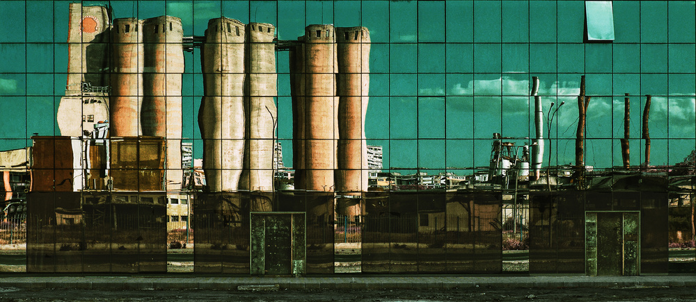 This are images from different cities showing spooky reflections from the surrounding area.
