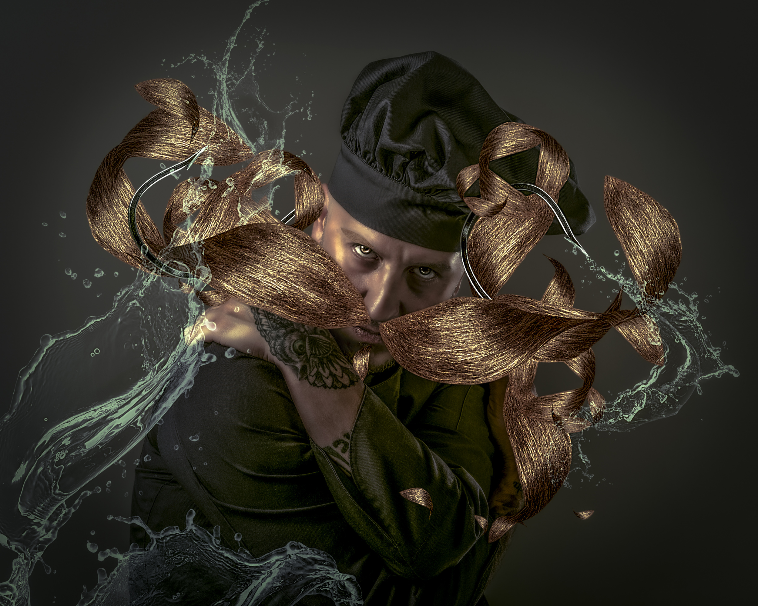 Later, I focus the image with a frequency separation. This method allows me to focus concrete areas of the image. Then I insist on the colour only of certain areas such as cheeks, eyelids, lips and assembly elements, to complete the process using the Dodge and Burn method that provides extraordinary volume in photography. Even though some consider noise as an artistic element, it is unacceptable to me. I rarely use the camera with a sensitivity higher than 100 ISO. It is fascinating to see how the image changes during the post-production process.
