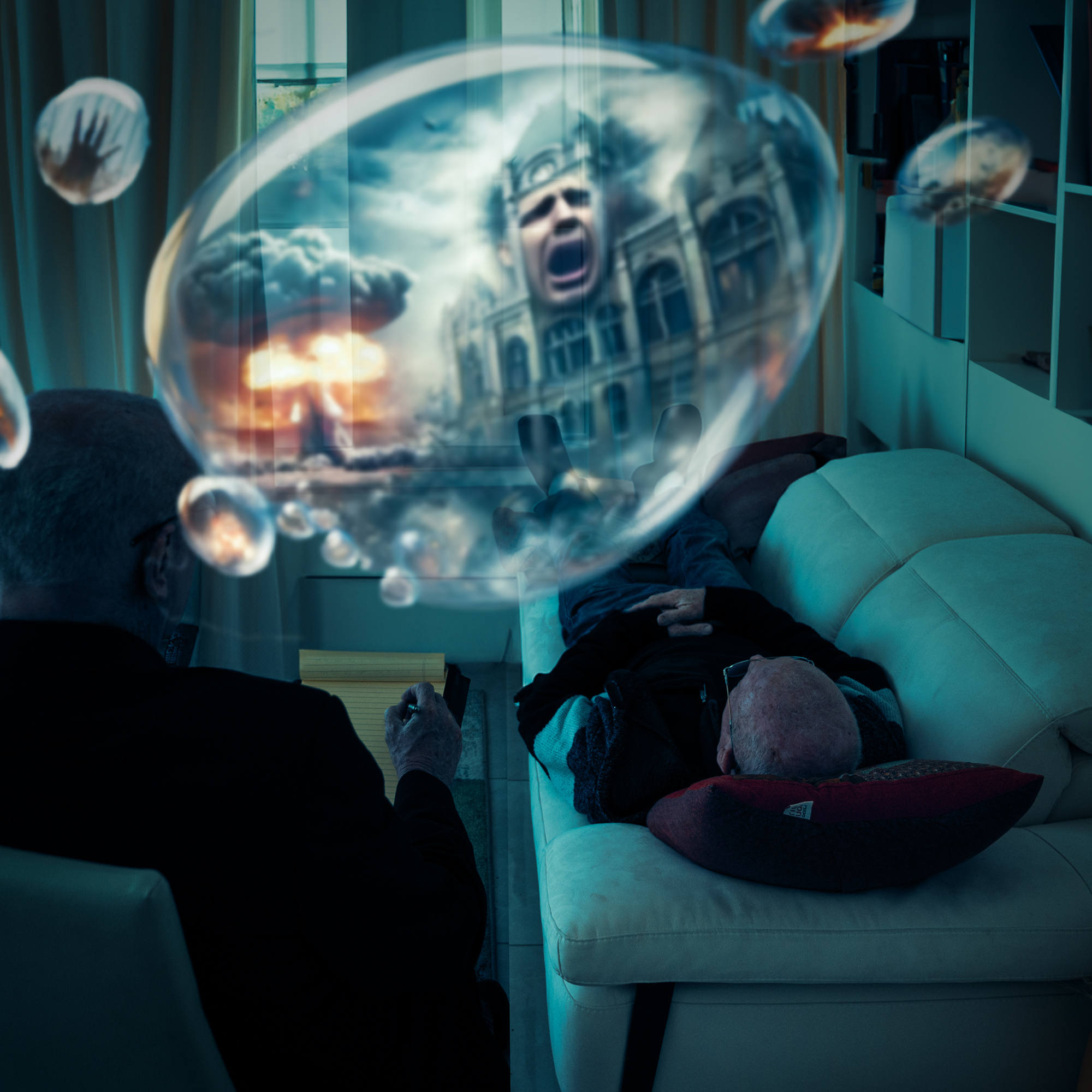* Compositing: Once all necessary elements are captured, the real construction begins in Photoshop. I extract, position, and merge different components to create a coherent and immersive scene. This phase demands careful attention to perspective, scale, and spatial depth to maintain realism within the surreal framework. As I arrange the elements, new possibilities emerge—sometimes necessitating reshoots or the abandonment of initial details in favor of a stronger visual or narrative impact.